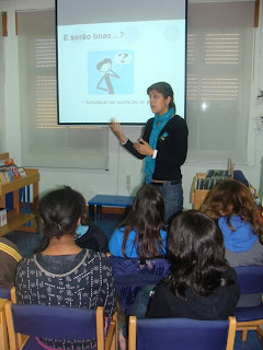 Na primeira sessão contámos com o apoio precioso do professor bibliotecário Pedro Moura (do nosso Agrupamento) que visitava o Centro de Recursos nesse dia. Obrigada, Pedro, e volta sempre!