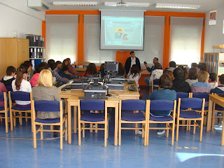 A equipa de professores bibliotecários convidou os membros da Direcção a visitarem as diferentes Bibliotecas do Agrupamento e partilharem leituras. Aceitaram o desafio e foi assim que recebemos a professora Filipa Carvalho no Centro de Recursos.