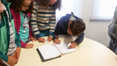 E contámos com a presença de dois alunos, da turma da Professora Ana Guedes, da Escola Básica número 1 da Venda do Pinheiro.